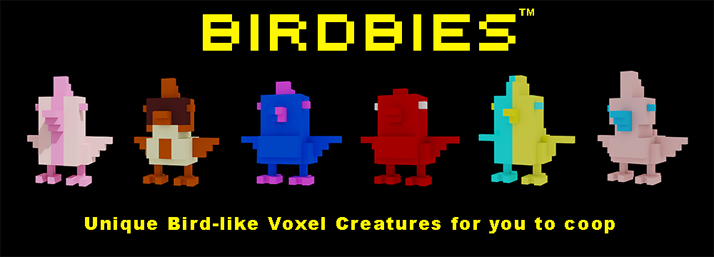 Birdbies are 1000 unique 3D voxel bird-like creatures, created by Artist Johnny Otto then registered on the Ethereum blockchain. No algorithms were used to generate these one-of-a-kind works of art. Each was handcrafted by the Artist himself. Each has its own personality and is ready to be collected (cooped).