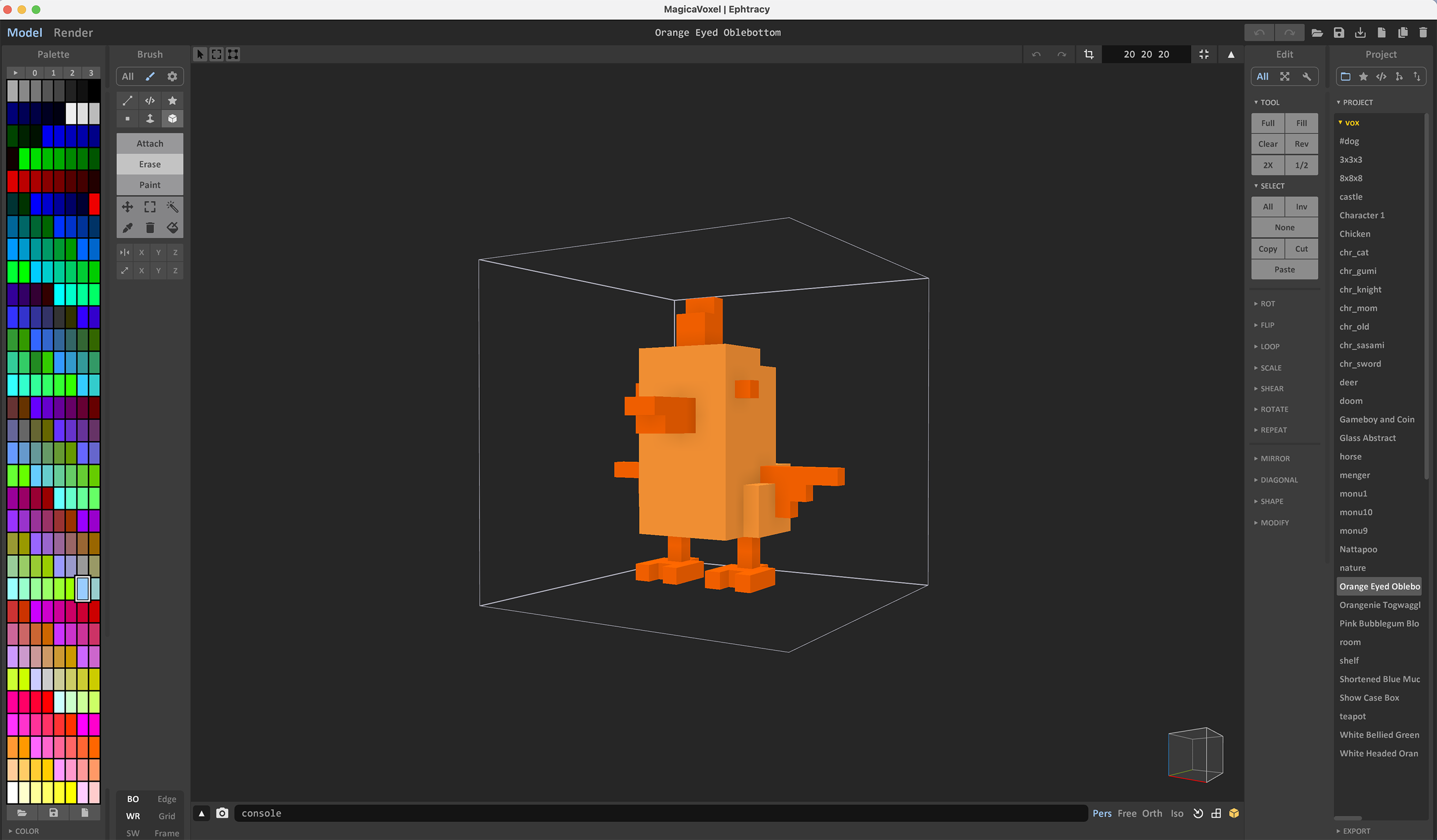Each of the Birdbies was created one at a time, block by block, using  MagicaVoxel a free to use program for Mac and Windows.