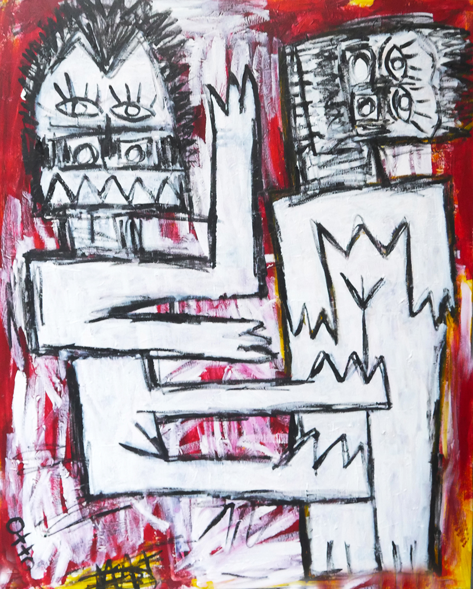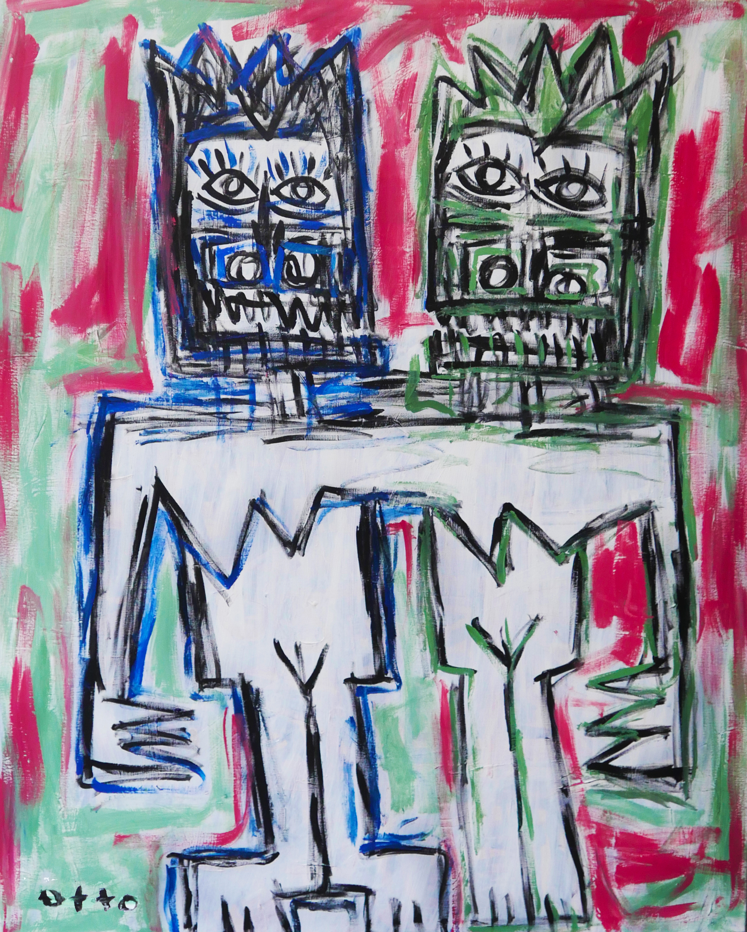 Otto’s journey began with his Czech and German heritage and a transformative childhood visit to the Detroit Institute of Arts, where he was captivated by the museum’s vast African art collection. This early experience awakened his passion for primal symbolism and the raw power of creative expression, elements that have defined his work for over 35 years. Often described as vibrant, aggressive, and unapologetically powerful, Otto’s art has drawn comparisons to Basquiat, Haring, and Picasso, yet his voice remains unmistakably his own.