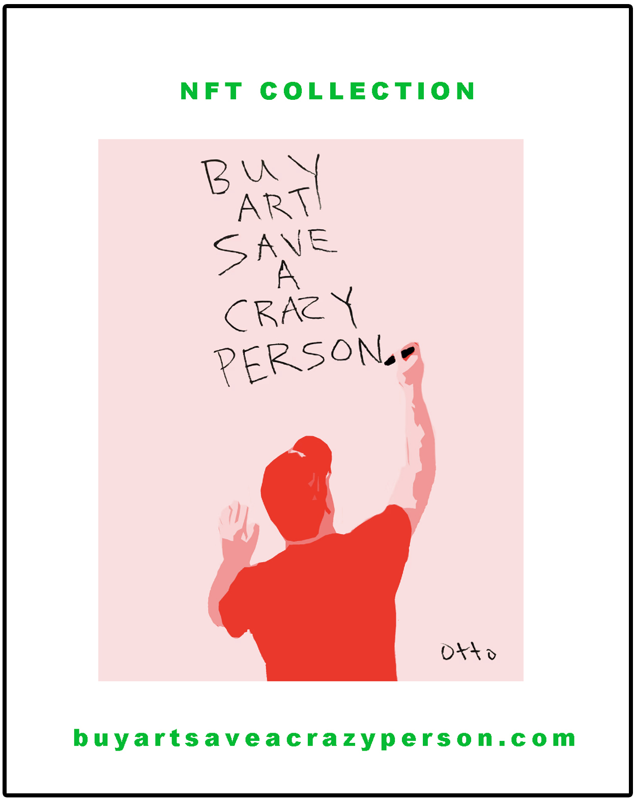 ![]() Limited edition NFTs featuring "BUY ART SAVE A CRAZY PERSON" by Johnny Otto provide a modern, innovative way to support the arts. These digital tokens offer exclusivity, authenticity, and a meaningful connection to the message. By embracing NFTs, supporters can champion the transformative power of art, help sustain artists in the digital age, and spread a message that challenges us to value and nurture creativity in all its forms.