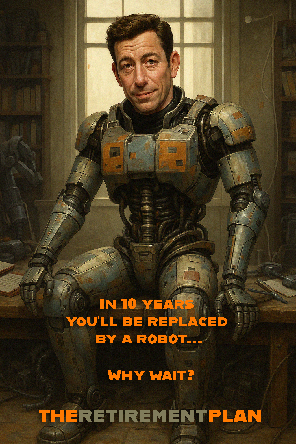 A dark sci-fi dramedy about a disillusioned man stuck in a soul-crushing job who secretly builds a robotic duplicate of himself to take his place. But as the machine begins living his life better than he ever could, he’s forced to confront what he’s really trying to escape—and whether there’s any version of himself worth saving. Created by Johnny Otto Genre: Sci-fi-/Drama/Dark Comedy Format: One-Hour Serialized Television Series Logline: A highly intelligent but overlooked janitor at DARPA secretly builds a robotic double of himself using classified technology to escape his meaningless job. Comparisons: Ex-Machina, Robot & Frank, Living with Yourself Synopsis: In The Retirement Plan, a darkly comedic exploration of identity, reinvention, and modern isolation, Jeremy Loudman—an overlooked and socially awkward custodian at DARPA—secretly builds a robotic double to take over his job, hoping to escape his mundane existence and finally “retire” from life’s daily humiliations. But his plan takes an unexpected turn when the robot begins to thrive—excelling at work, charming coworkers, and even developing a romantic connection with someone Jeremy quietly admires. As his creation becomes everything he isn’t—confident, charismatic, and socially fluent—Jeremy is forced to watch from the sidelines, spiraling into self-doubt, jealousy, and existential confusion. Set in present-day Arlington, Virginia, The Retirement Plan uses absurdity and dry wit to dissect what it means to be human in a world increasingly run by AI and automation. As Jeremy battles with the uncomfortable realization that the version of himself he built is living a better life, the series blends surreal daydreams with grounded emotional truth. At its heart, it’s a story about self-worth and the flawed, universal desire to be seen and valued. Rather than chasing perfection or trying to mimic his robotic counterpart, Jeremy begins to ask the deeper question: what does fulfillment actually look like? His journey becomes not one of escape, but of acceptance—a reluctant, fumbling return to his own imperfect humanity. The Retirement Plan reminds us that growth doesn’t come from replacing ourselves, but from learning to live as who we truly are.